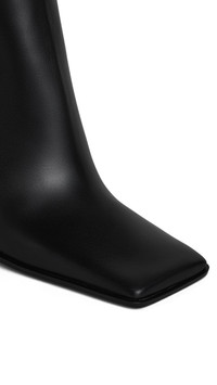 DETAILS Ankle chelsea boots with square toe Shiny leather stacked block heel 90 mm heel Soft calfskin leather Made in Italy MATERIALS Highlights MAIN MATERIAL: 100% CALFSKIN LEATHER SECONDARY MATERIAL: 100% CALFSKIN LEATHER MAIN LINING: 100% LAMBSKIN LEATHER SECONDARY LINING: 100% GOATSKIN LEATHER TRIMMING: 100% ELASTANE SOLE: 50% CALFSKIN LEATHER, 50% RUBBER HEEL:100% ACRYLONITR BUTADIENE STYR PRODUCT REFERENCE: AA3O2022I052-999