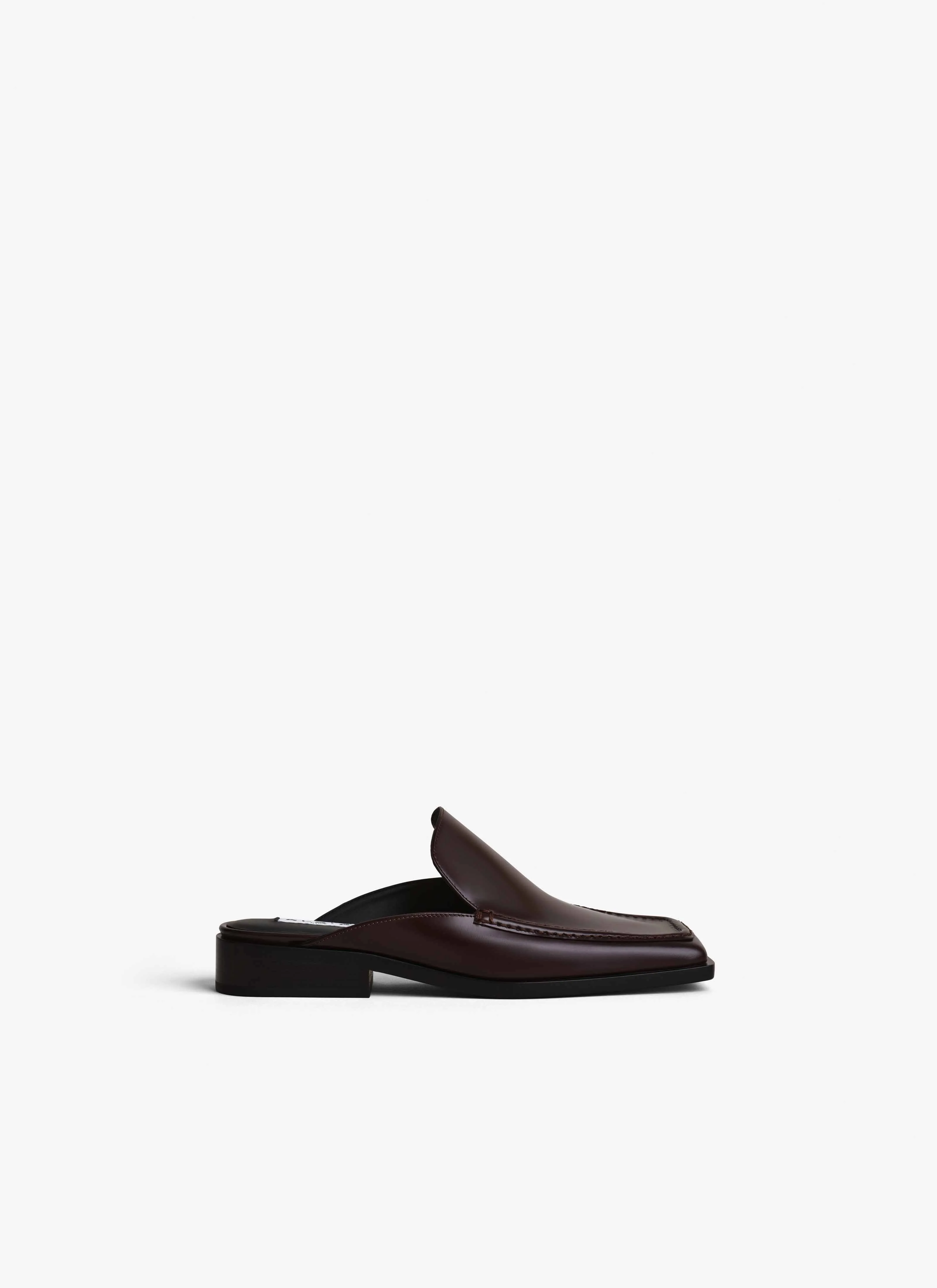 Square toe mules Classic loafer details with topstitching on the upper Brushed calfskin leather with a glossy finish 35mm heel Made in Italy DETAILS MAIN MATERIAL : 100% CALFSKIN LEATHER MAIN LINING : 95% LAMBSKIN LEATHER SECONDARY MATERIAL : 5% CALFSKIN LEATHER SOLE : 100% CALFSKIN LEATHER PRODUCT REFERENCE : AA3L1003I072-719