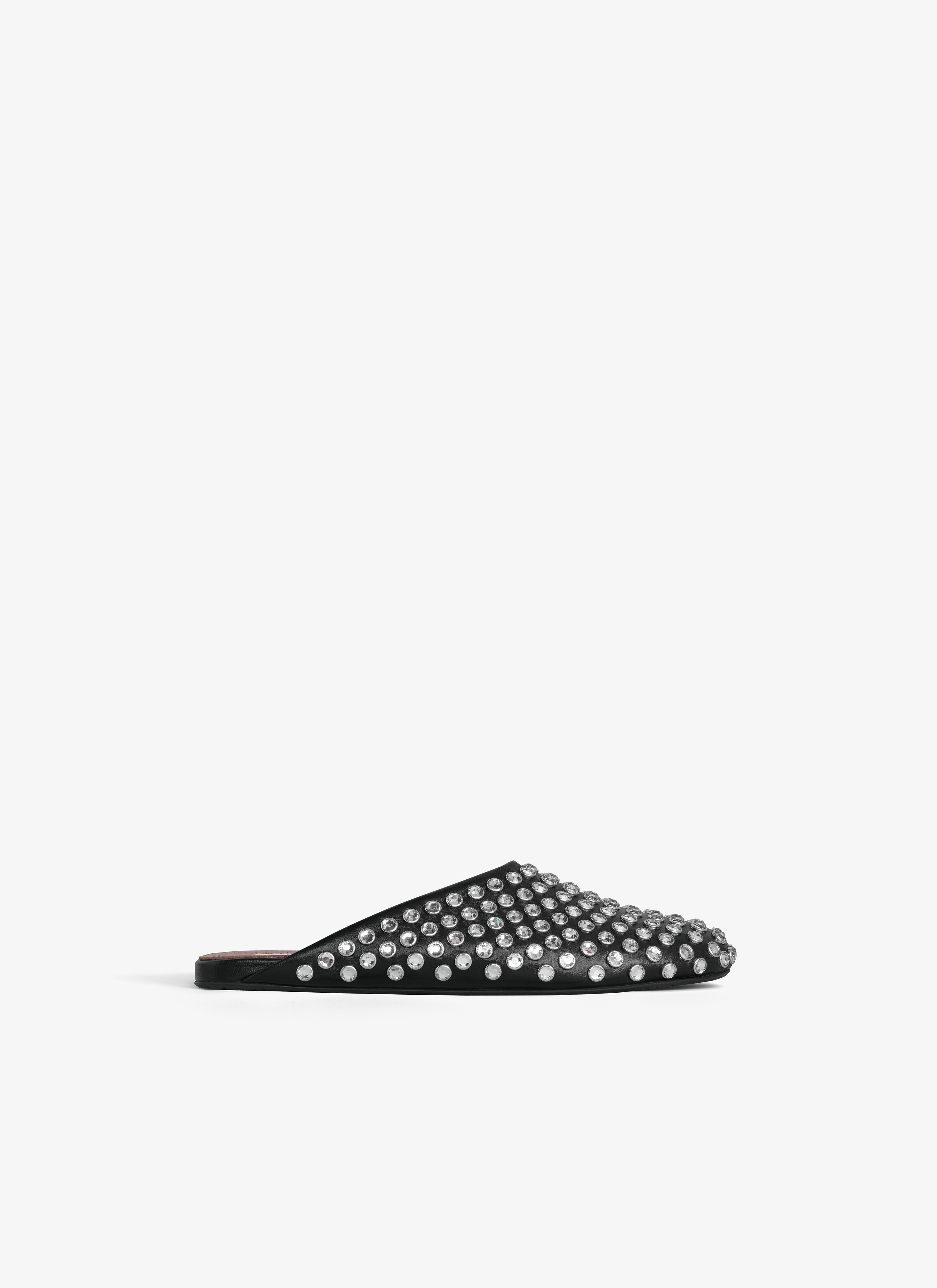 ballet flats mules inspired by classical japanese shoes rubber sole made in italy DETAILS COMPOSITION: EXTERIOR: 100% LAMBSKIN ADDITIONAL RHINESTONE MATERIAL: 60% ACRYLIC, 40% BRASS ADDITIONAL MATERIAL 2 BUCKLES: 100% ZAMAK LINING: 100% LAMBSKIN SOLE: 100% RUBBER PRODUCT REFERENCE: AA3M081CK116 - 900