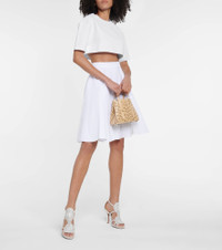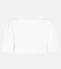 This pure white crop top from Alaïa is made from the label's signature piqué jersey – a dense, stretch-rich fabric that flatters the figure. A versatile layering piece, style it under a blazer for formal affairs. Product Details - Material: 16% polyester, 6% polyamide, 2% elastane, 76% viscose - Care instructions: dry clean - Made in Italy - Designer color name: Blanc - Item number: P00546579 Size & Fit - True to size - Dropped shoulders - Designed for a loose fit - Mid-weight material - Cropped - The model seen in the picture is 178cm-5'10" and wearing a size FR 36