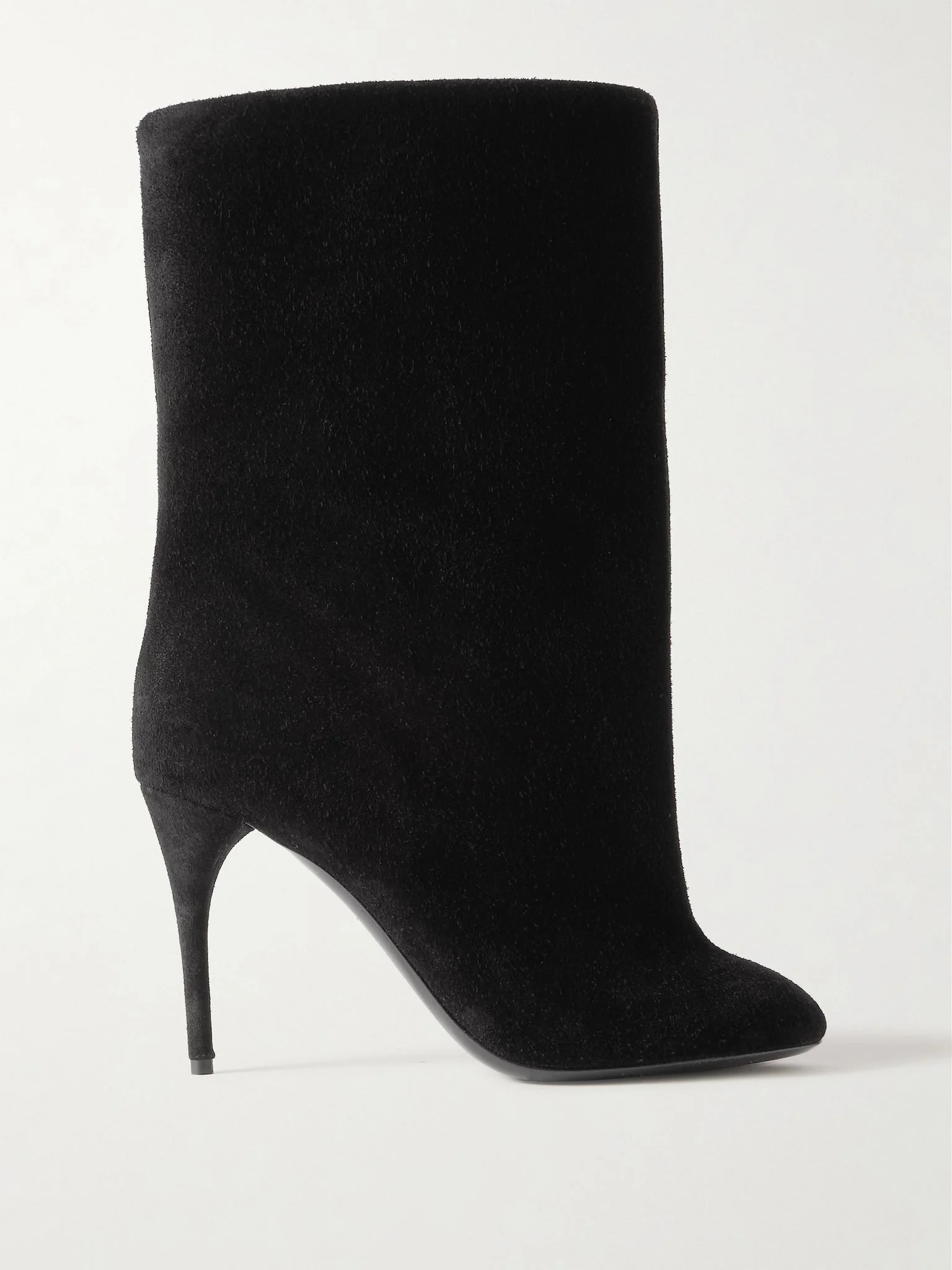Alaia’s ankle boots have an exaggerated shaft that gives them a sculptural appearance. They’re made from smooth suede with almond toes and slender 70mm stiletto heels. Size & Fit - Fits true to size, take your normal size - Only available in full sizes, go up to the nearest whole size if you take a half size - Italian sizing Details & Care - Heel measures approximately 70mm/ 3 inches - Black suede (Calf) - Pull on