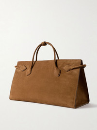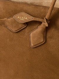 Alaia designs timeless investment pieces that are exceptionally made. This nubuck 'East West' tote is defined by its sharp silhouette and signature diamond-tipped straps. It's a practical size for work, with room for a cardigan, journal and water bottle. Details & Care - Brown nubuck - Top handles - Internal slip pocket - Open top