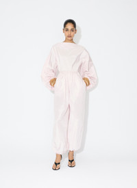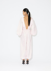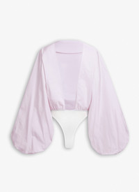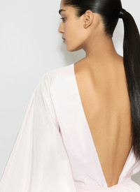 Bodysuit blouse in silk taffeta with balloon sleeves >Straight neckline, open back, integrated ribbed knit panties Made in Italy DETAILS MAIN MATERIAL: 100% SILK BOTTOM: 96% VISCOSE 4% ELASTANE PRODUCT REFERENCE: AA9H1162W039A - 416