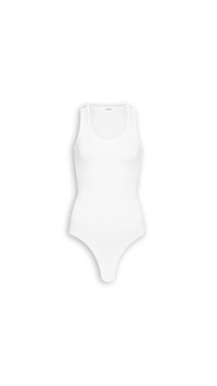Ribbed sleeveless scooped neck body knitted in matte viscose. Made in Italy DETAILS COMPOSITION: 83% VISCOSE, 17% POLYESTERE PRODUCT REFERENCE: AA9B01752M035 - 000