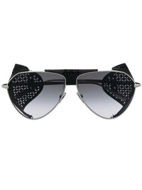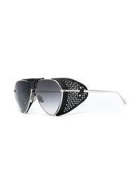 tinted-lens leather-side sunglasses silver-tone pilot frame tinted lenses calf leather logo-engraved arm straight arms curved tips These glasses come with a protective case. Made in Italy Composition Metal 100% SIZE & FIT Measurement Arm Length 5.51 in(14 cm) Bridge Width 0.43 in(1.1 cm) Lens Diameter 2.55 in(6.5 cm) Total Width 5.7 in(14.5 cm)