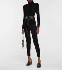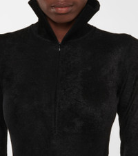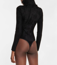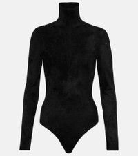 Made from a tactile fabric, this bodysuit from Alaïa has a turtleneck and a zipped front. Product Details - Made in Italy - Material: 38% polyamide, 62% viscose, 2% wool - Closure: zipped back - Designer color name: Noir Alaia - Care instructions: do not wash - Item number: P00699717 Size & Fit - True to size - Fitted - Mid-weight material - High-cut leg - The model seen in the picture is 178cm-5'10" and wearing a size FR 36