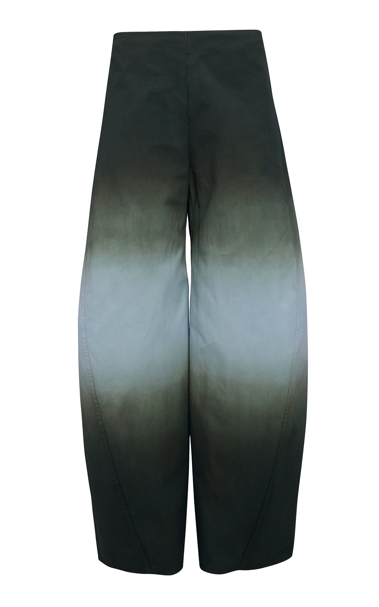 Founded by Azzedine Alaia, today the maison, under the direction of Pieter Mulier, continues the revered couturier's uncompromising vision which champions masterful cuts that accentuate the female form. These pants have round, barrel legs made from ombre cotton with twisted side seams. PRODUCT DETAILS - Pre-Fall '25 - Zip fastening - Composition: 100% cotton; Pocket Lining: 100% cotton - Designer color: Green-Grey - Dry clean - Made in Italy