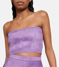 Add texture to your edit with this purple top from Alaïa, which has been crafted from velvet to a bandeau silhouette. Product Details - Material: 6% polyester, 38% wool, 2% elastane, 29% viscose, 25% polyamide - Care instructions: dry clean - Made in Italy - Designer color name: Glycine - Item number: P00753287 Size & Fit - True to size - Strapless - Fitted - Mid-weight material - Cropped - The model seen in the picture is 178cm-5'10" and wearing a size FR 36