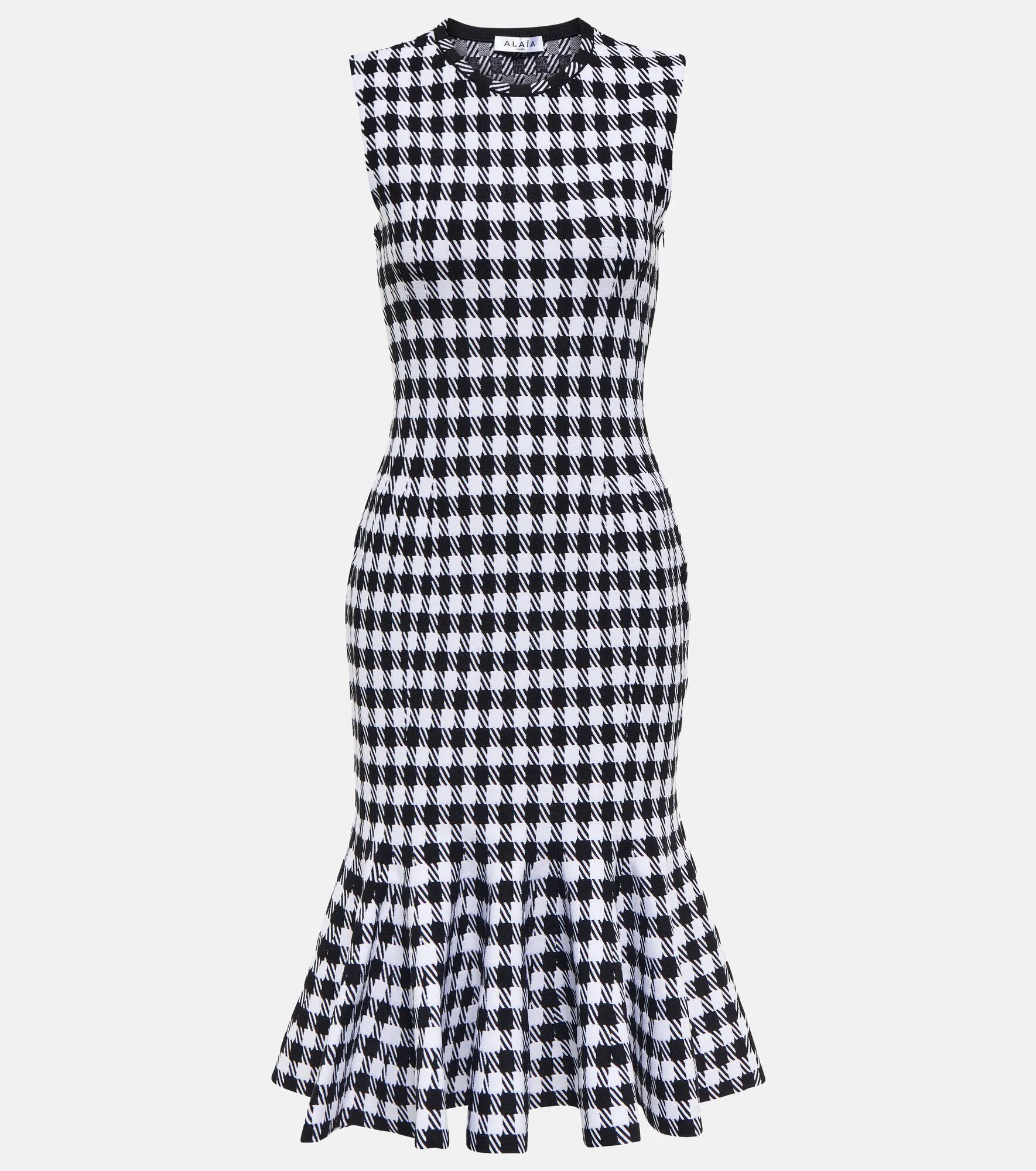 Inspired by the Tati collection from 1991, this minidress from Alaïa features the iconic Vichy check pattern in magnified proportions. The compact knit design has a fitted silhouette and a pleated, flared hem. - material: 44% viscose, 43% polyamide, 9% polyester, 4% elastane - care instructions: specialist clean - zipped side - Made in Italy - Designer colour name: Noir/Blanc