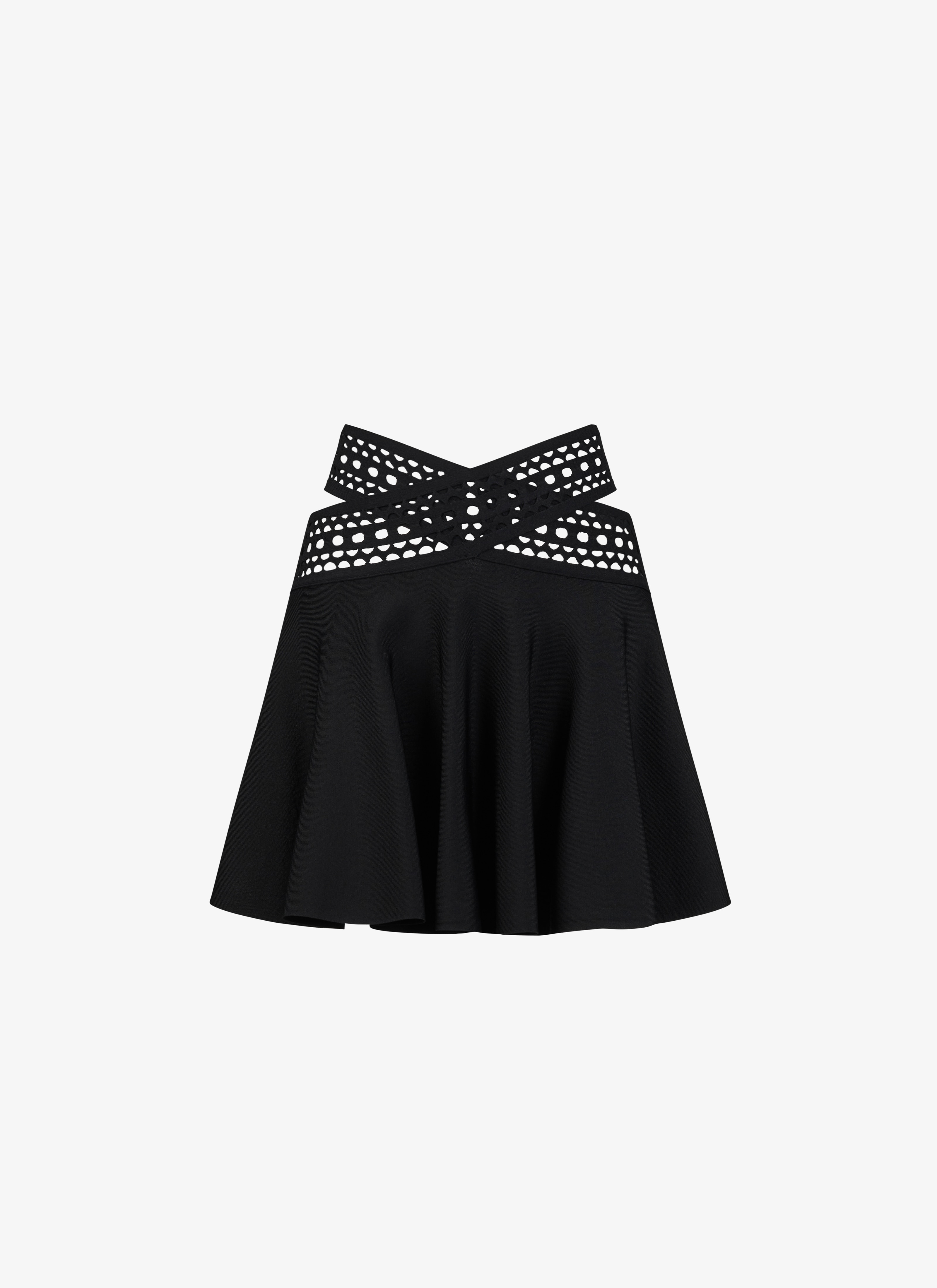 vienne skater skirt stretch viscose vienne bands knitted in matt viscose made in italy DETAILS COMPOSITION: 75% VISCOSE ADDITIONAL MATERIAL: 25% POLYESTER, 6% POLYAMIDE THE MODEL MEASURES 1m78 AND WEARS A SIZE 34 PRODUCT REFERENCE: AA9J21534M774 - 995