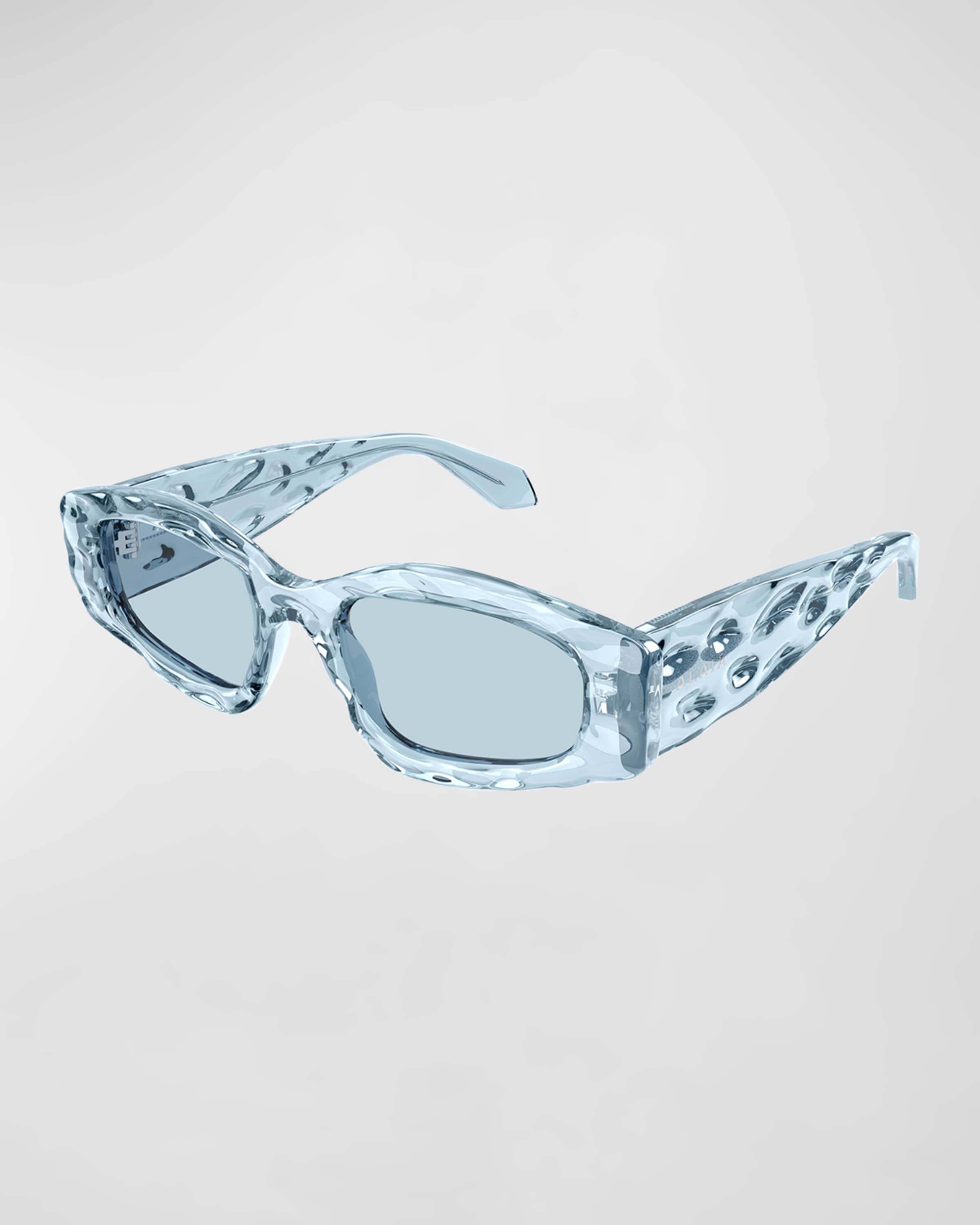- ALAIA "AA0079S" wavy rectangle sunglasses in acetate - Solid lenses - Saddle nose bridge - Logo on temples - Wide, tapered arms - 100% UVA/UVB protection - Made in Italy Online Inquiries: NMS21_D4UHS Store Inquiries: #4705938