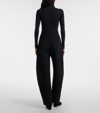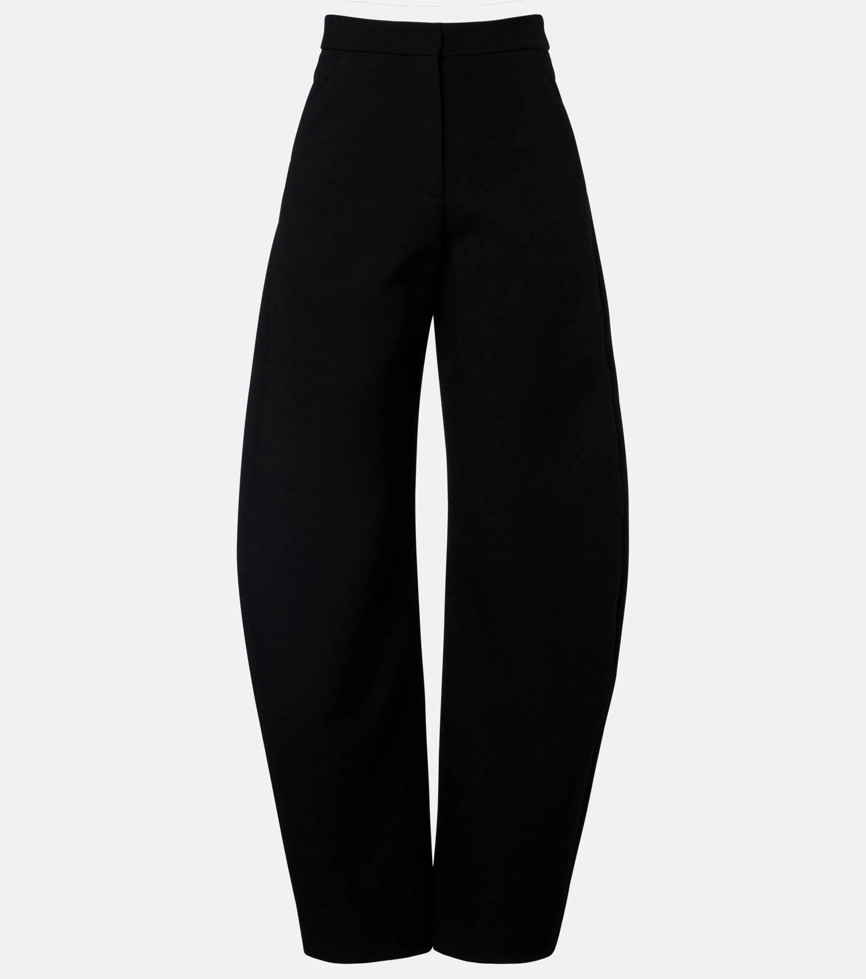 Upholding the legacy of Azzedine Alaia, the maison’s collections achieve an artful balance between sculptural and wearable. These pants are crafted from a soft wool blend and tailored to a barrel-leg silhouette with a dramatic curved shape. Product Details - Material: 94% wool, 6% polyamide - Care instructions: dry clean - Made in Italy - Color: black - Designer color name: Noir - Item color: black - Pocket lining: 100% cotton - Pockets: slant pockets - Closure: zipper fly, button and hook fastenings - Item number: P01118828 Size & Fit - True to size - Non-stretchy fabric - Wide-leg - High-waisted - The model seen in the picture is 178cm-5'10" and wearing a size FR 34