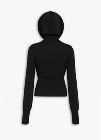 Hooded jumper in merino compact ribbed knit Long sleeves, ribbed cuffs Sculptural circular hood framing the face Fitted cut Made in Italy DETAILS MAIN MATERIAL : 100% VIRGIN WOOL PRODUCT REFERENCE : AA9G0071K133B-995