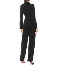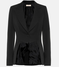 This black blazer from Alaïa is defined by cut-out paneling that draws attention to the waist, creating a subtle tailcoat effect. Made in Italy from wool twill, it’s tailored to a figure-skimming silhouette with lightly padded shoulders and peak lapels. A smooth lining ensures it will layer bulk-free over shirting – though our editors suggest wearing it solo for a more daring evening look. Wear yours with matching pants, in lieu of an LBD, for your next special event. Product Details - Lining: fully lined, 100% viscose - Made in Italy - Buttoned cuffs - Designer color name: Noir - Material: 100% wool - Closure: buttoned front - Shoulder pads - Care instructions: dry clean - Item number: P00495513 Size & Fit - Fits small to size - we recommend trying one size larger - Oversized shoulders - Shoulder pad inserts - Cinched waist - Mid-weight material - The model seen in the picture is 178cm-5'10" and wearing a size FR 38