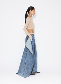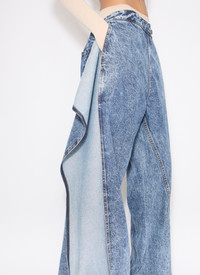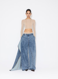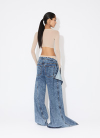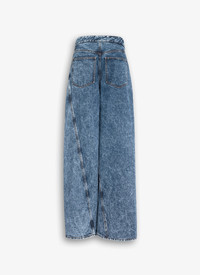 Wide leg wrap pants in stonewashed denim Low waist, thin waistband, classical denim details and twisted topstitching Detachable front panel revealing the right leg when worn open Straight cut Made in Italy DETAILS MAIN MATERIAL: 99% COTTON 1% POLYURETHANE POCKET LINING: 65% POLYESTER 35% COTTON PRODUCT REFERENCE: AA9P1170T535A - 524