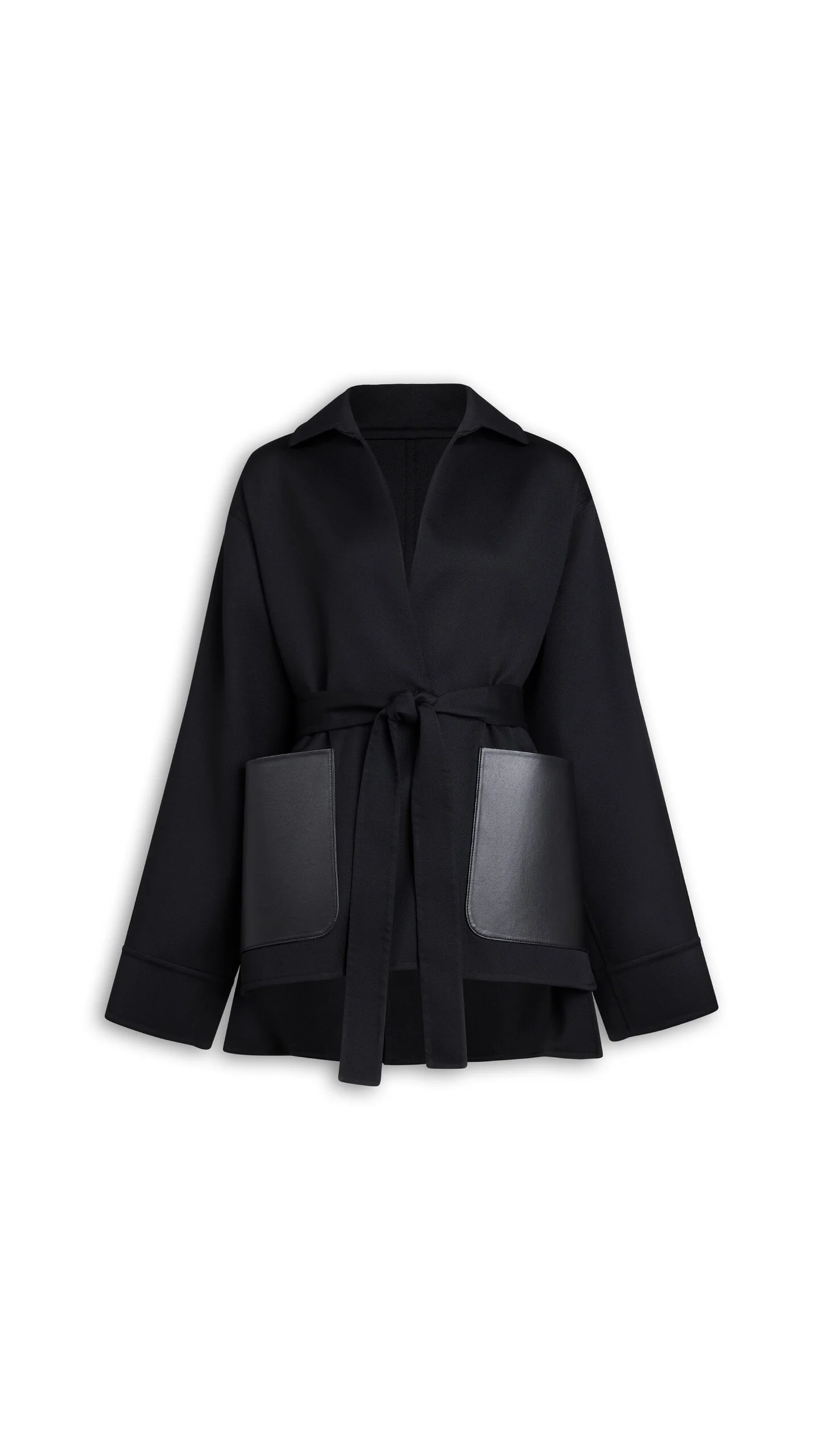 DETAILS Wrap jacket in tailored wool Regular fit with classic collar, dropped shoulders and leather patch pockets Placket neckline, buttons and wrap closure, leather back patch for belt loop and straight hem, full lining Made in Italy MATERIALS Highlights MAIN MATERIAL: 100% VIRGIN WOOL POCKET: 100% LAMBSKIN LEATHER PRODUCT REFERENCE: AA9V1250W130C-995