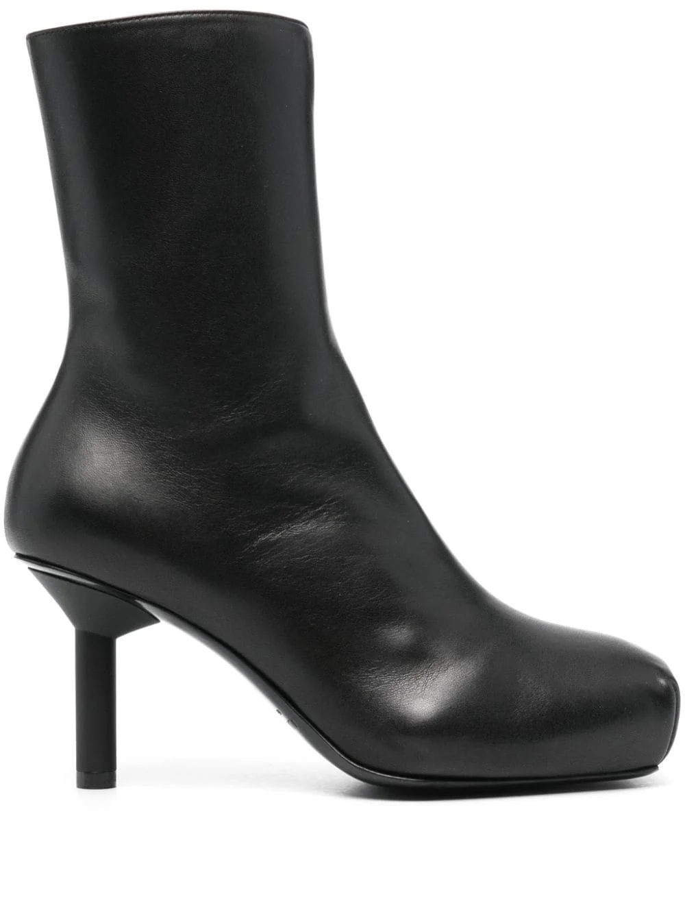 85mm leather boots Highlights - Black - Calf leather - Smooth grain - Square toe - Branded leather insole - 85mm high heel - Leather outsole - Side zip fastening Made in Italy Composition Lining: Calf Leather 100% Outer: Calf Leather 100% Sole: Calf Leather 100% SIZE & FIT Measurement CIRCUMFERENCE 10.23 in(26 cm) HEEL 3.34 in(8.5 cm) HEIGHT 6.88 in(17.5 cm) Sole height 0.39 in(1 cm)