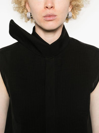 sleeveless shirt Highlights - Black - Cotton - Poplin texture - Sleeveless - Concealed front button fastening - Stand-up collar - Pintuck panel to the front - Box-pleat detail to the back - Curved hem Imported Composition Cotton 100% SIZE & FIT Model measurements Height 5 ft 9 in(1.75 m) Bust/Chest 33.85 in(86 cm) Hips 36.22 in(92 cm) Waist 25.98 in(66 cm) FittingInformation Designed for a slim fit that sits just away from the body offering a close yet comfortable fit Made from a midweight non-stretch fabric