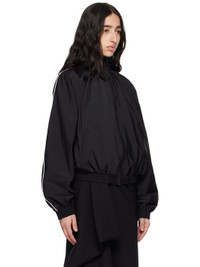 Stretch nylon taffeta track jacket. · Gathering at stand collar · Zip closure · Zip pockets · Elasticized hem and cuffs · Contrast piping at sleeves · Rubber logo patch at sleeve · Full cotton jersey lining Supplier color: Black Body: 92% polyamide, 8% elastane. Lining: 100% cotton. Made in Portugal 251288F063004