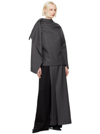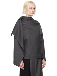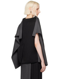 Virgin wool twill and viscose twill top. Integrated skirt-style overlay. · Layered and wrap construction · Button fastening at collar · Darts at front · Concealed zip closure at back · Central vent at back hem · Full logo-woven satin lining Supplier color: Gray/Black Body 1: 100% virgin wool. Body 2: 100% viscose. Lining: 100% viscose. Made in Portugal 242288F110003