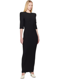 Plain-woven stretch virgin wool-blend maxi dress. · Round neck · Logo-woven elasticized stirrups at hem · Padded shoulders · Zip closure at back · Central vent at back hem Supplier color: Black 88% virgin wool, 8% polyamide, 4% elastane. Made in Portugal 251288F055011