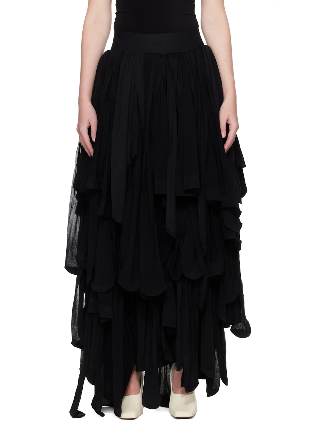 Stretch nylon jersey maxi skirt. Extended trim throughout. · Layered construction · Logo-woven elasticized waistband Supplier color: Black 90% polyamide, 10% elastane. Made in Portugal 251288F093002