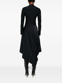 draped asymmetric dress Highlights - Black - Long sleeves - Asymmetric hem - High neck - Panelled design - Draped detail Imported Composition Polyamide 80%, Elastane 20% SIZE & FIT Model measurements Height 5 ft 11 in(1.8 m) Bust/Chest 31.49 in(80 cm) Hips 36.61 in(93 cm) Waist 24.4 in(62 cm)