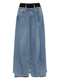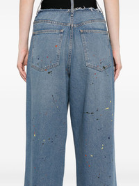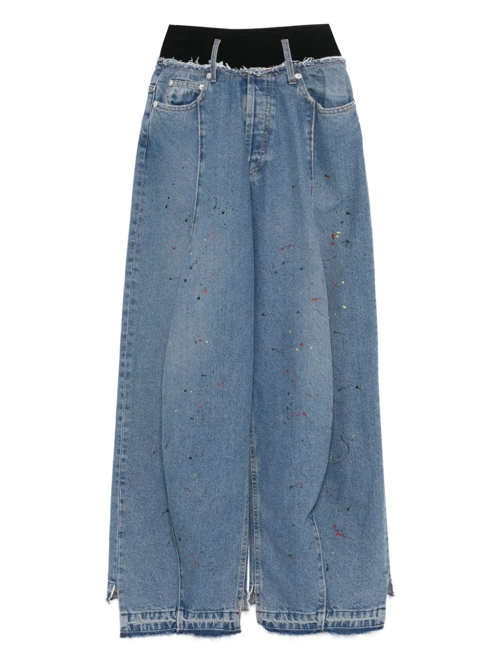 paint-splash jeans Highlights - Indigo blue - Elasticated logo waistband - Classic five pockets - Raw-cut hem Imported Composition Cotton 100% SIZE & FIT Model measurements Height 5 ft 9 in(1.76 m) Bust/Chest 31.1 in(79 cm) Hips 35.03 in(89 cm) Waist 24.4 in(62 cm) FittingInformation Designed for a tapered fit, these jeans allow a close fit at the waist and a loose unrestricted fit over the leg with a closer fit towards the ankle The elasticated waist allows for a comfortable fit Sturdy and hard-wearing, this denim piece offers no stretch Washing instructions Machine Wash