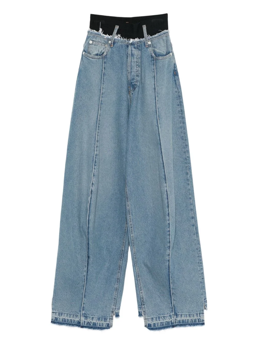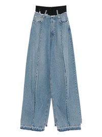 elasticated-waist jeans Highlights - Light blue - Frayed hem - Front seam detail - Button fastening - Five pockets Imported Composition Cotton 100% SIZE & FIT Model measurements Height 5 ft 10 in(1.78 m) Bust/Chest 31.49 in(80 cm) Hips 37 in(94 cm) Waist 23.62 in(60 cm) Washing instructions Machine Wash