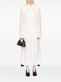 fuseau trench coat Highlights - White - Front button fastening - Two side welt pockets - Rear slit Imported Composition Polyamide 92%, Elastane 8% SIZE & FIT Model measurements Height 5 ft 9 in(1.76 m) Bust/Chest 31.1 in(79 cm) Hips 35.03 in(89 cm) Waist 24.4 in(62 cm) FittingInformation Designed to be unstructured, offering a loose fit throughout The vented hem offers movement at the rear Made from a midweight stretch fabric, this piece offers elasticity and flexibility when worn Washing instructions Machine Wash