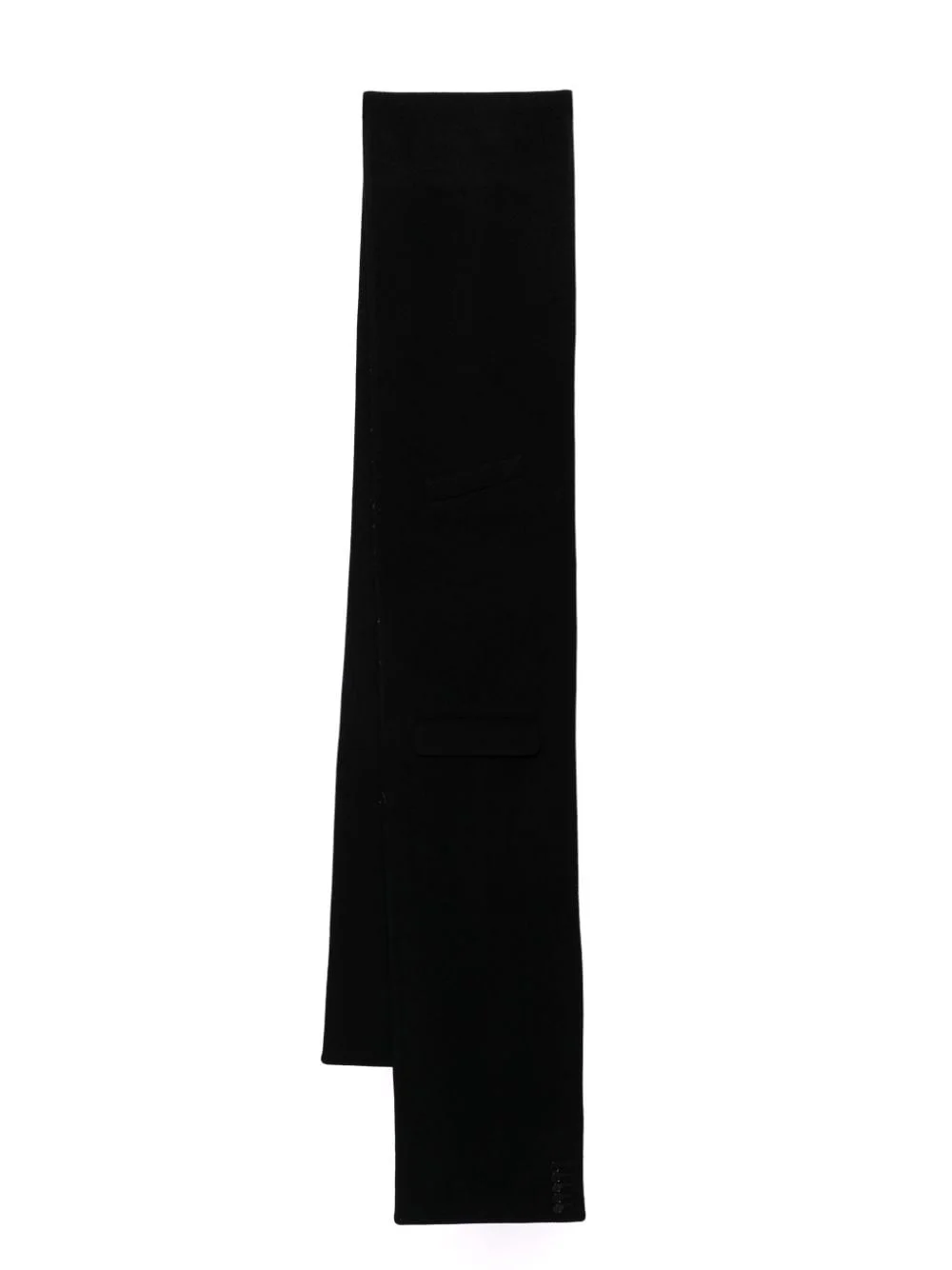 pocket wool scarf Highlights - Black - Wool - Flap pocket - Logo patch to the rear - Button fastening - Wraparound style Imported Composition Lining: Viscose 100% Outer: Wool 100% SIZE & FIT Measurement LENGTH 110.23 in(280 cm) WIDTH 9.84 in(25 cm)