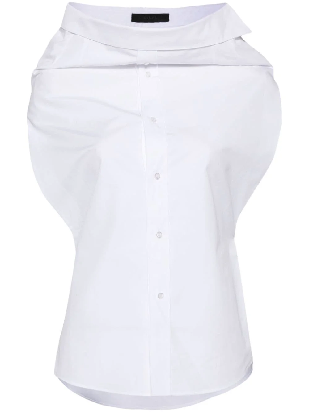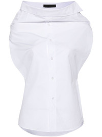 poplin skirt shirt Highlights - White - Cotton - Poplin texture - Skirt-inspired design - Wide neck - Cap sleeves - Rear box-pleat detail - Side slits - Curved hem - Front button fastening Made in Italy Composition Cotton 100% SIZE & FIT Model measurements Height 5 ft 10 in(1.78 m) Bust/Chest 33.07 in(84 cm) Hips 36.61 in(93 cm) Waist 24.8 in(63 cm) FittingInformation Designed for a slim fit that sits just away from the body offering a close yet comfortable fit Made from a midweight non-stretch fabric This piece fits true to size – take your usual size