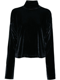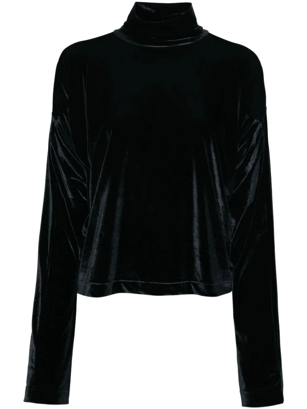 velour high-neck top Highlights - Black - Velour - Stretch-design - High neck - Long sleeves - Embroidered logo to the rear - Straight hem Imported Composition Nylon 87%, Elastane 13% SIZE & FIT Model measurements Height 5 ft 11 in(1.8 m) Bust/Chest 33.07 in(84 cm) Hips 37.4 in(95 cm) Waist 25.19 in(64 cm) FittingInformation Designed for a relaxed fit, this piece allows for comfort and movement when worn Made from a midweight stretch fabric, this piece offers elasticity and flexibility when worn