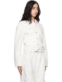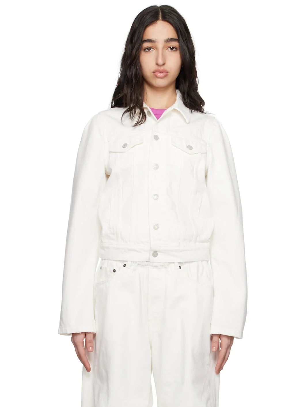 Non-stretch denim jacket. Subtle distressing throughout. · Spread collar · Button closure · Flap and welt pockets · Dart at shoulders · Button fastening at cuffs · Adjustable button tabs at back hem · Logo-engraved antiqued silver-tone hardware Supplier color: White wash 100% cotton. Made in Italy 251288F060001