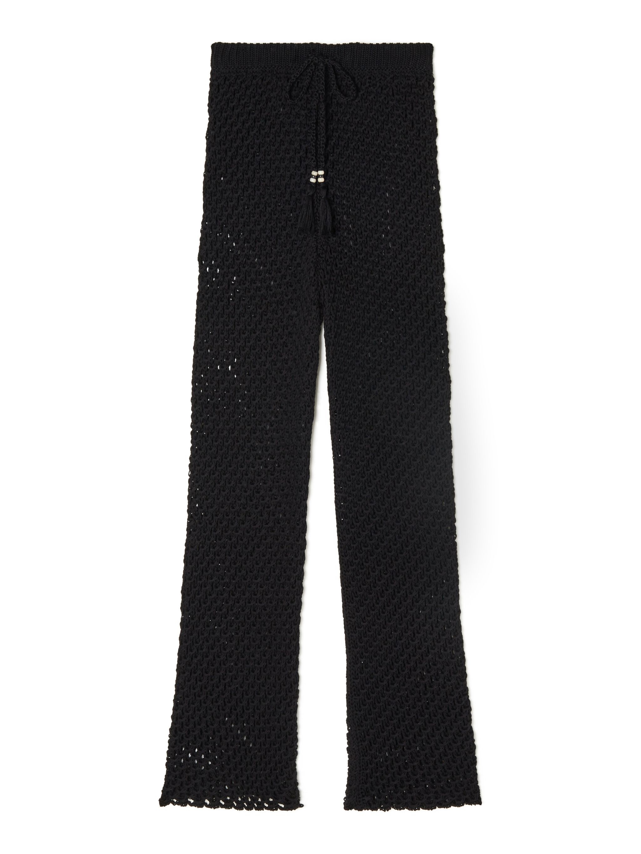 Part of the Alanui Conscious Line, the A Love Letter to India Pants embody the spirit of the Spring / Summer 2024 collection. Crafted from 100% cotton with all-over net stitch for a loose fit and featuring handmade laces with tassels and multicolored bead detailing. PRODUCT DETAILS Product Code LWHG013R24KNI0021000 Made in Italy. Crafted from 100% Cotton. Details: 100% Acrylic. The model is 177 cm and wears a size M. This item fits true to size.