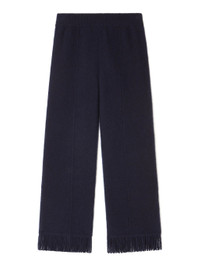 Part of our luxury wellbeing line, the Alanui Finest Pants pairs a relaxed wide-leg fit with the super soft sensation of a cashmere and silk blend in Milano stitch. Each piece in the Alanui Finest line has been specially crafted to offer comfort and timeless appeal. Featuring ribbed waistband and fringed cuffs. PRODUCT DETAILS Product Code LWHG001E24KNI0024600 Made In Italy Crafted from 71% Cashemere 19% Silk 10% Polyester This item takes two hour and an half to be knitted and another two to be assembled. The model is 180 cm and wears a size M. This item fits true to size.