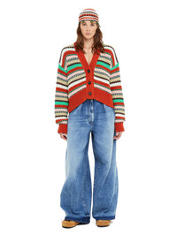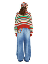 Alanui travels to Africa for inspiration this season. Knitted from organic cotton using waffle stitch, the Sunny Stripes Cardicrop captures the unmistakable hues of the African continent in an irregular stripe pattern. Featuring a cropped fit and complete with real horn buttons and ribbed finishes. DETAILS - Product Code LWHB055R25KNI0033020 - Made In Italy - Crafted from 100% Cotton. - This item weighs 104 gr and takes four hours and an half to be knitted and another four and an half to be assembled. - The model is 180 cm and wears a size M. - This item fits true to size.