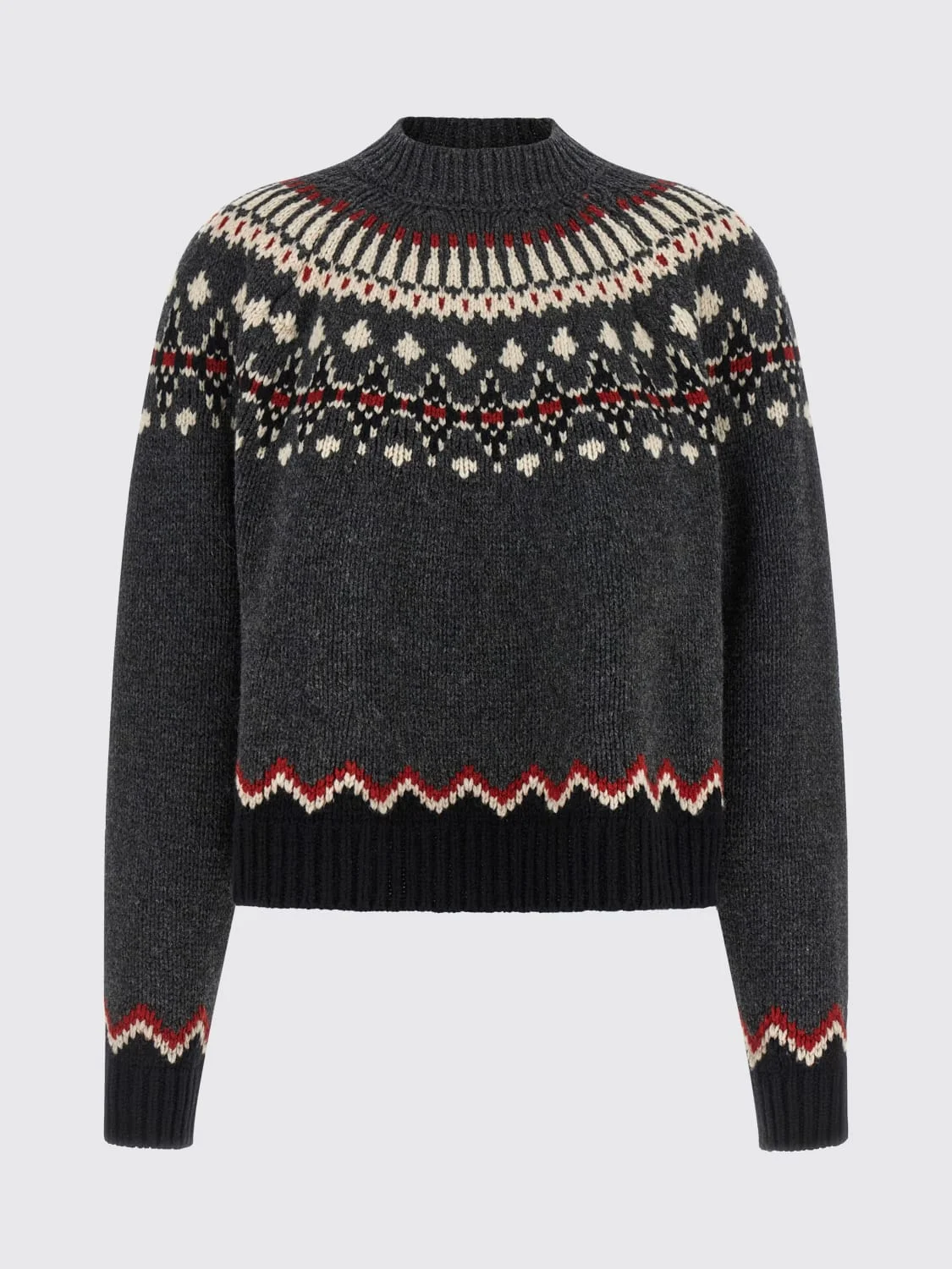 DESCRIPTION - Style: Country , Ethnic - Neck: Mock turtleneck - Shoulders: Regular - Sleeves: Long - Cuffs: Ribbed - Bottom: With ribbed edges - Materials: Virgin wool - Pattern: Jacquard DETAILS AND CARE Composition 100% virgin wool SIZE AND FIT Sizes not available Size and fit Regular fit Designer code: LWHE061E25KNI0010610 0610 Giglio Code: H77101 Designer: Alanui Collection: Alanui Woman Category: Clothing Alanui