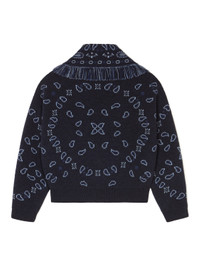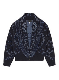 A contemporary take on a signature style, the Bandana Jacquard Cardi-Bomber pairs the iconic Bandana Pattern with a tailored cropped fit. Exquisitely crafted from cashmere and virgin wool using intricate double jacquard knit, the Cardi-Bomber features a multicolored fringed collar, ribbed trims, and real horn buttons. DETAILS - Product Code LWHB026E25KNI0014634 - Crafted from 70% Virgin Wool 30% Cashmere. - The model is 176 CM and wears a size M. - This item fits true to size.