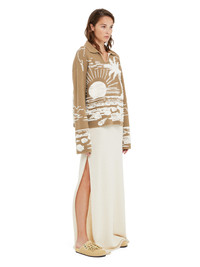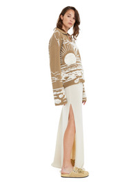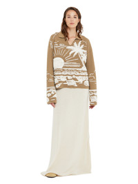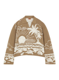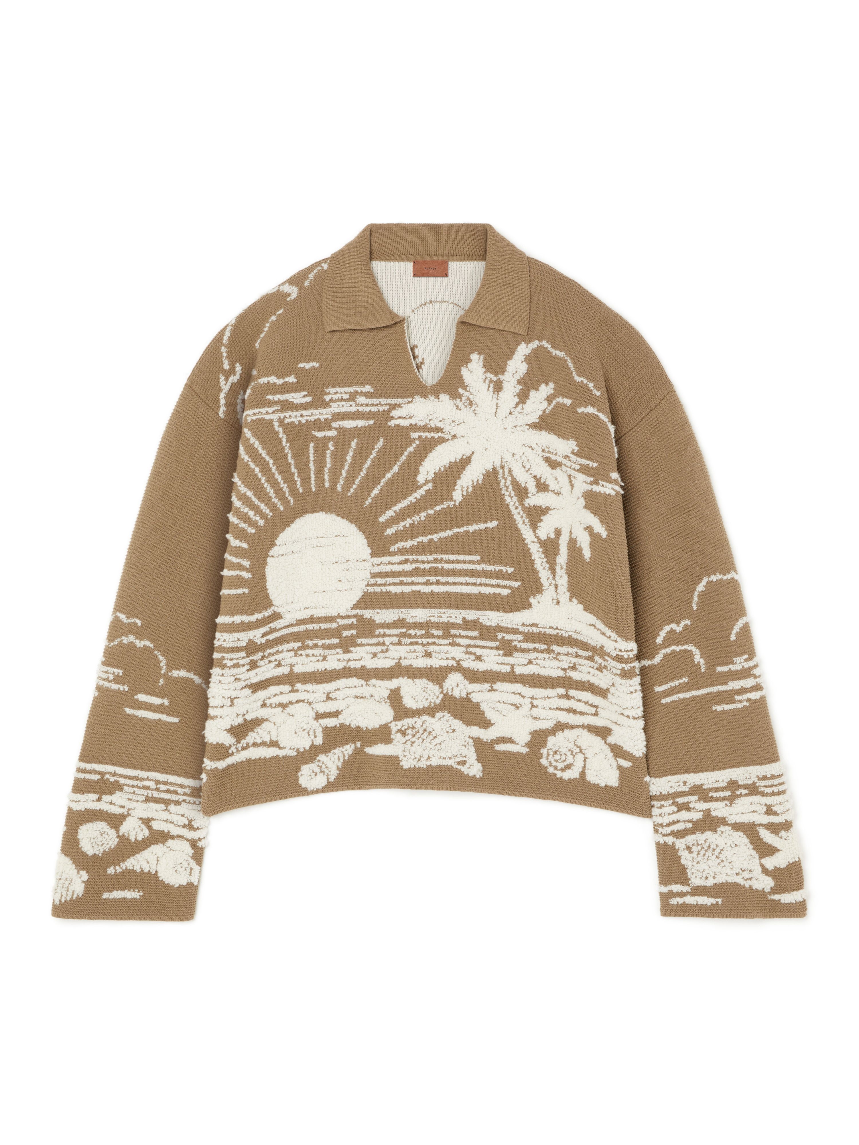 This Spring/Summer 2025, Alanui transports you to the sun-soaked shores of Africa. Pairing a signature boxy polo fit with a recycled cashmere and silk blend in double jacquard knit, the Beyond the Horizons Polo captures the sun setting over an ocean-kissed, shell-strewn beach. DETAILS - Product Code LWHV002R25KNI0046303 - Made In Italy - Crafted from 48% Silk, 47% Cashmere, 5% Wool. - This item weighs 831 gr and takes four hours to be knitted and another three to be assembled. - The model is 180 cm and wears a size M. - This item fits true to size.