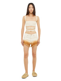 The Spring / Summer 2024 collection travels to India for inspiration. Crafted from 100% cotton, the Bright Hues Denim Shorts feature a pleated wide-leg fit and frayed edges. An everyday style brightened up by a vibrant dip-dye effect that calls to mind the countless colors of India. PRODUCT DETAILS Product Code LWYC009R24DEN0010360 Made in Italy. Crafted from 100% Cotton. Lining. 100% Cotton. The model is 177 cm and wears a size 27. This item fits true to size.
