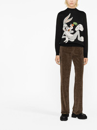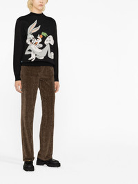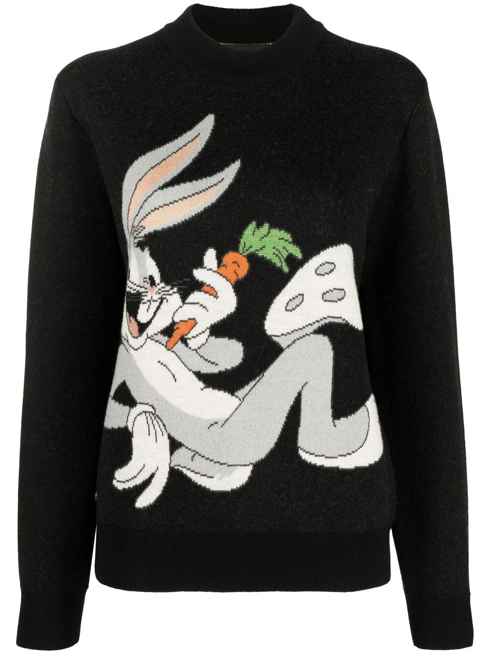 Bugs Bunny Bandana Jacquard jumper Alanui's propensity for creativity is finely demonstrated by the Bugs Bunny Jacquard jumper. Forming part of the brand's collaboration with Looney Tunes, this knitted garment is adorned with the beloved Bugs Bunny design and his familiar carrot. Made in Italy Composition Virgin Wool 100% SIZE & FIT Model measurements Height 5 ft 10 in(1.79 m) Bust/Chest 31.49 in(80 cm) Hips 35.03 in(89 cm) Waist 23.62 in(60 cm) FittingInformation This piece fits true to size. We recommend you get your regular size Cut for a relaxed fit Made with a mid-weight fabric Washing instructions Dry Clean Only
