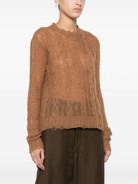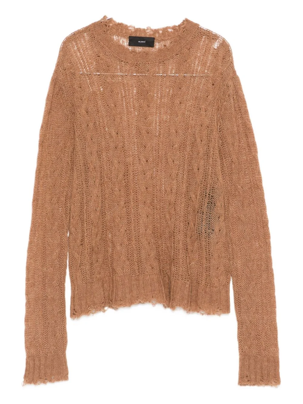 cable-knit frayed sweater Highlights - Camel brown - Cable knit - Frayed edges - Round neck - Long sleeves - Ribbed cuffs Imported Composition Fabric 100% SIZE & FIT Model measurements Height 5 ft 9 in(1.76 m) Bust/Chest 31.49 in(80 cm) Hips 35.43 in(90 cm) Waist 23.62 in(60 cm) Washing instructions Read Manufacturer Guidelines