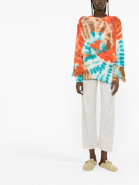 California Dreamin' net-knit jumper Crafted for over seven hours from weighty virgin wool, the California Dreamin' jumper from Alanui gets its name from the notorious laidback Californian aesthetic. Boasting a vivacious orange tie-dye print and signature Iconic tactile pattern at the chest, it is finished with perforated detailing and handmade tassels throughout. Made in Italy Composition Virgin Wool 100% SIZE & FIT Model measurements Height 5 ft 10 in(1.79 m) Bust/Chest 31.1 in(79 cm) Hips 35.03 in(89 cm) Waist 24.01 in(61 cm) FittingInformation This piece fits true to size. We recommend you get your regular size Cut for a loose fit Made with a mid-weight fabric Washing instructions Dry Clean Only