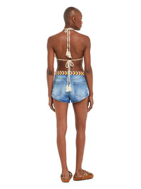 Alanui celebrates the splendor of the natural world this season. Inspired by the fragrant coastal flower, the hand-crocheted Cape Jasmine Bikini Top is adorned with handcrafted tassels and gold beading. Complete with long, adjustable straps. DETAILS - Product Code LWAE004R25KNI0010376 - Made In Italy - Crafted from 74% Cotton, 26% Polyester. Applications: 100% ABS Acrylonitrile Butadie. - This item weighs 52 gr. - The model is 177 cm and wears a size M. - This item fits slim.