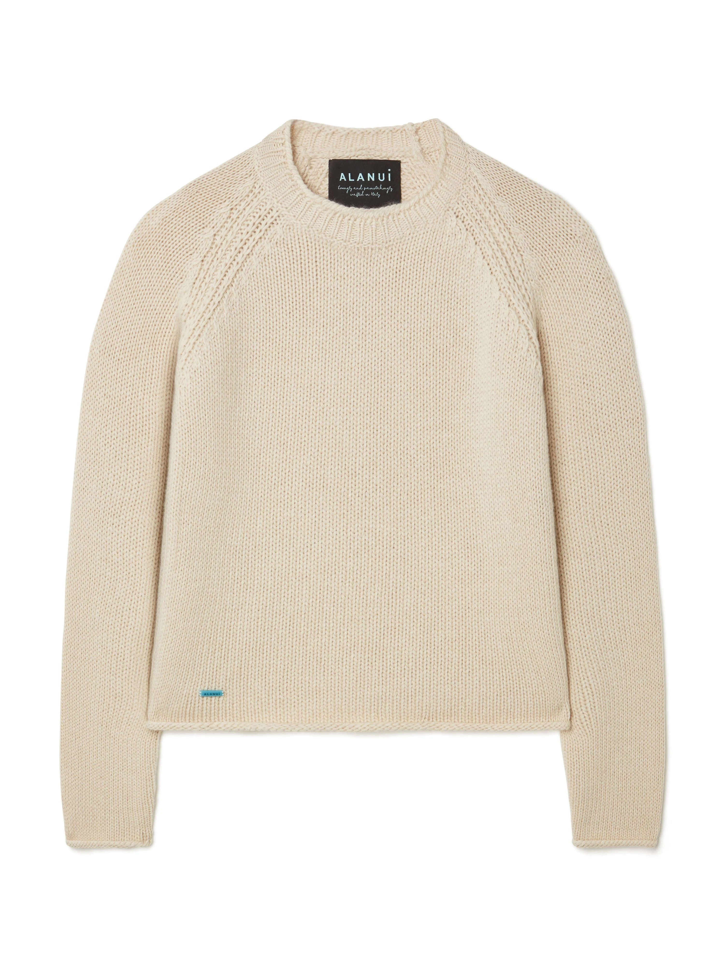 Part of our luxury wellbeing line, the Alanui Finest Sweater pairs a crewneck fit with the incredibly soft sensation of a cashmere and silk blend, complete with ribbed finishes. Offering an elevated take on timeless wardrobe essentials, every garment in the Alanui Finest collection has been specially crafted using expert knitting techniques. DETAILS - Product Code LWHE076R25KNI0020300 - Made In Italy - Crafted from 64% Cashmere, 36% Cotton. - This item weighs 525 gr and takes two hours and an half to be knitted and another three and an half to be assembled. - The model is 180 cm and wears a size M. - This item fits true to size.