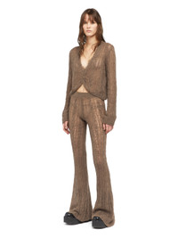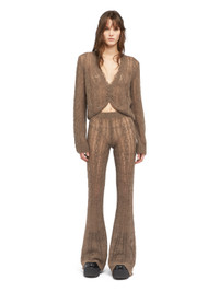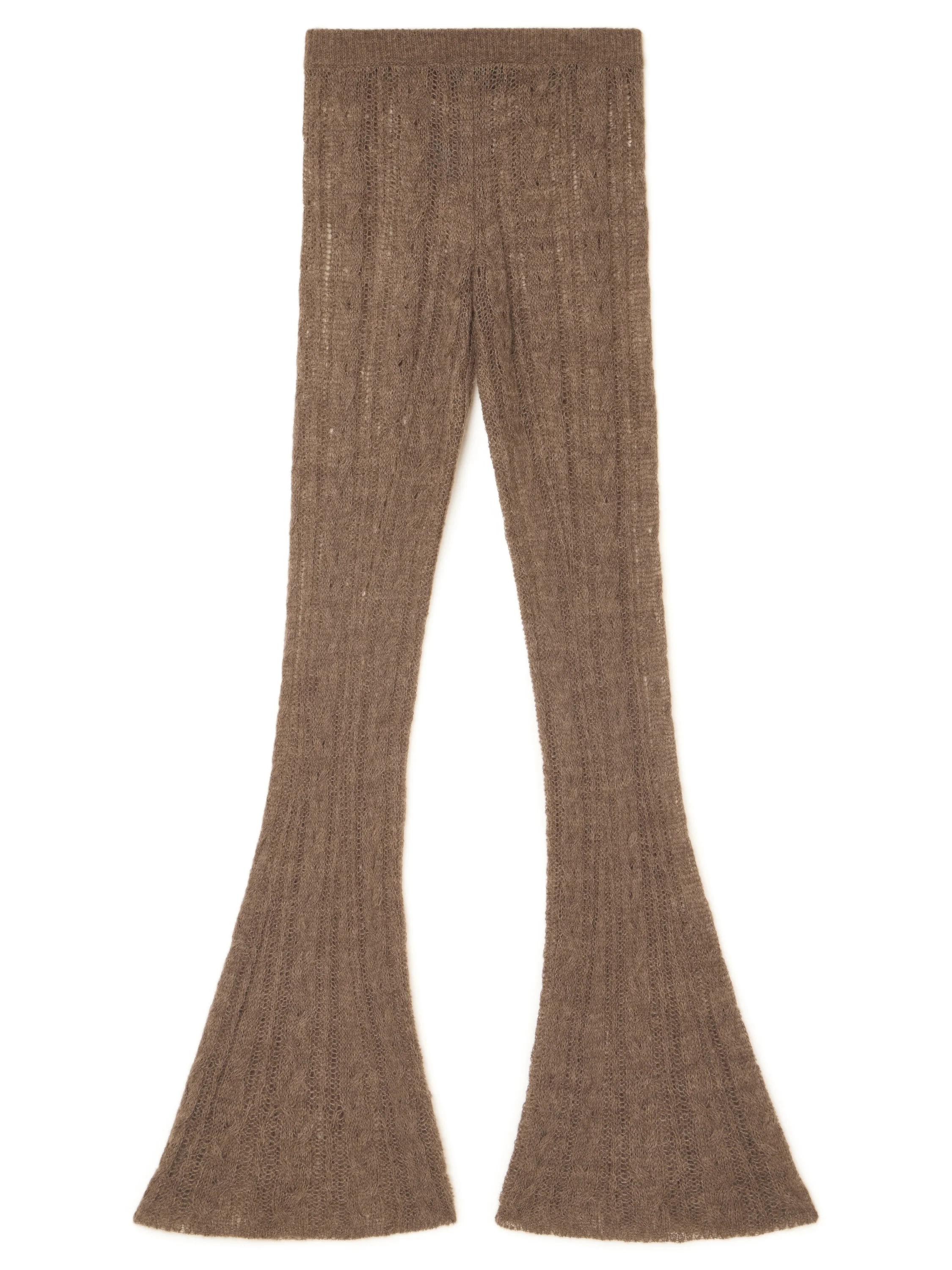This Fall / Winter 2025, Alanui heads into the wilds of California. Inspired by the spirit of desert wanderers, the Desert Drift Pants are crafted from a barely-there baby alpaca, cashmere, and silk blend with a braided motif in all-over cable stitch. Featuring a flared style and ribbed trims. DETAILS - Product Code LWHG017E25KNI0016000 - Crafted from 40% Alpaca 30% Cashmere 30% Silk. - The model is 178 CM and wears a size M. - This item fits true to size.