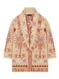 This Spring / Summer 2026, Alanui dives into the mystical allure of French Polynesia. The Echoes of the Island Cardigan captures the island’s natural harmony in a textured, island-inspired foulard motif in double jacquard knit. Crafted in Italy from a cotton and wool blend, it features the original Icon fit, a matching tie belt, and fringed edges. DETAILS - Product Code LWHB064R26KNI00361OF - Crafted from 60% Wool 40% Cotton Product weight: 1100 grTaking three hours to be knitted and another six to be assembled. - The model is 180 cm and wears a size M. - The item fits true to size.