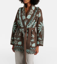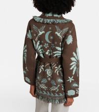 The Echoes Of The Island cardigan by Alanui features an allover foulard motif in a double jacquard knit. Knitted in Italy from a cotton and wool blend, the piece comes with a matching belt and fringed edges. Product Details - Material: 60% wool, 40% cotton - Care instructions: dry clean - Made in Italy - Color: brown - Designer color name: Brown - Detachable belt - Pockets: side slit pockets - Closure: belted waist - Fringed hem - Includes: garment bag - Item number: P01114298 Size & Fit - True to size - Dropped shoulders - Loose fit, comes with belt - Non-stretchy fabric - Falls below the hip - The model seen in the picture is 178cm-5'10" and wearing a size XS