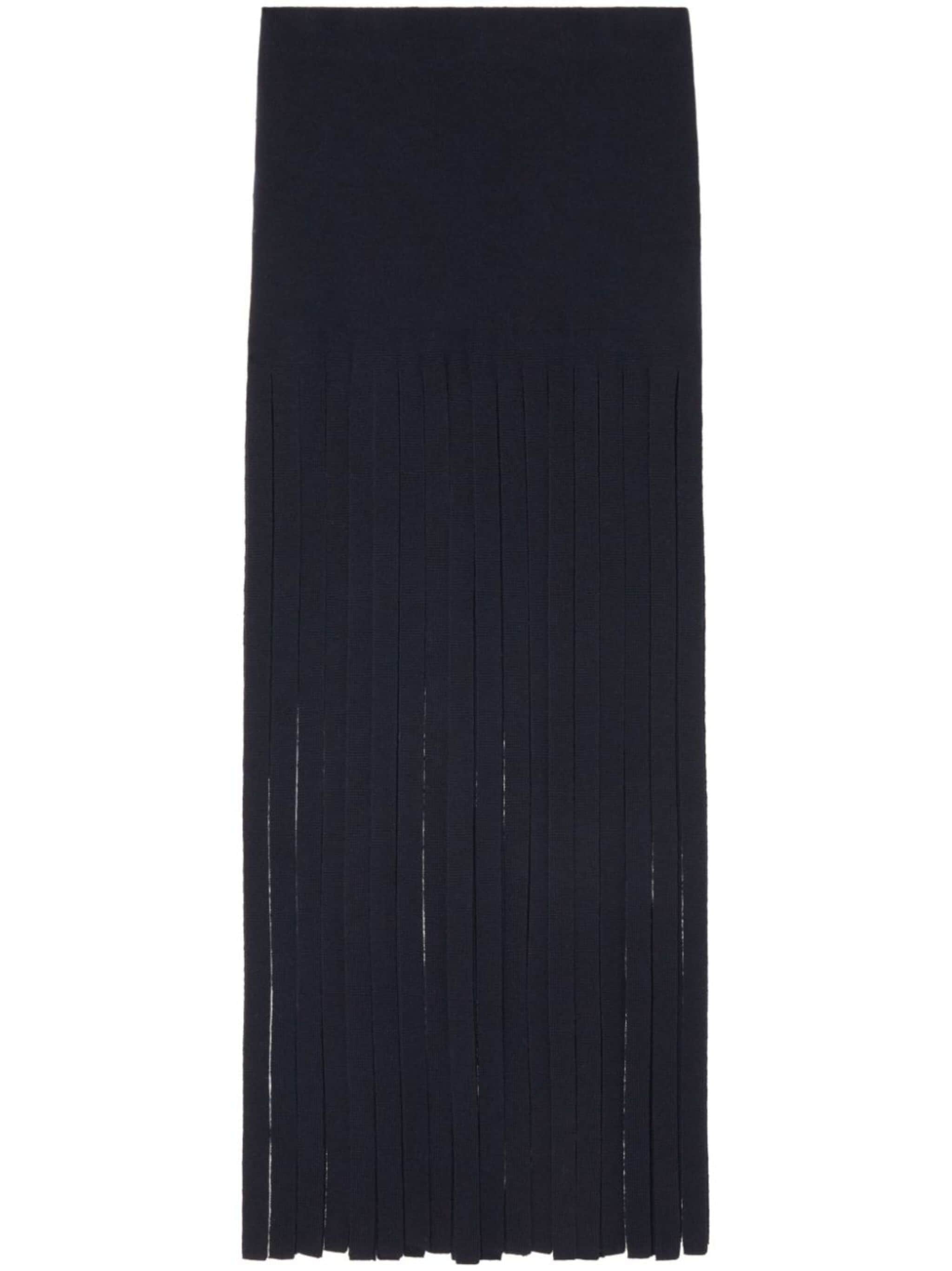 midnight blue wool blend ribbed knit cut-out detailing fringed edge high-waisted elasticated waistband Size & Fit Model Measurements: Bust: 0cm Height: 0cm Hips: 0cm Waist: 0cm Fabric and Care Designer Style ID: LWHL029E24KNI0024900 Designer Colour: 4900 MIDNIGHT BLUE Composition: Polyamide 6%, Elastane 3%, Virgin wool 91% Washing instructions: Read Manufacturer Guidelines Made in Italy